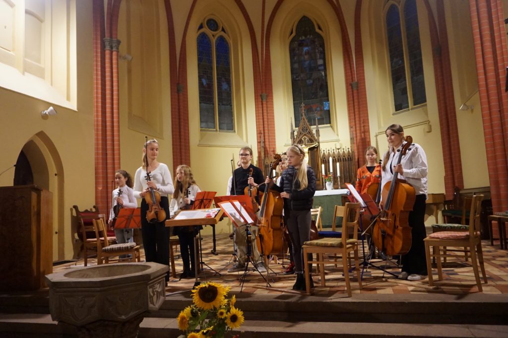 und für manche Warener/innen schon ein fester Termin im Kalender. Dies liegt an der spannenden Mischung aus dem Erleben von musizierenden Kindern und dem Klang der Orgeln in den 3 Kirchen. Auch das „Wandeln“ von Kirche zu Kirche ist Teil des Erlebnisses. Eine Besucherin formulierte: „Es war wieder, wie immer, toll und ergreifend“- 17 Uhr St. Marien: Streichtrio, Blockflöten-Duo